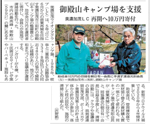 美濃加茂ライオンズクラブと共に御殿山キャンプ場の整備、清掃活動を行いました。